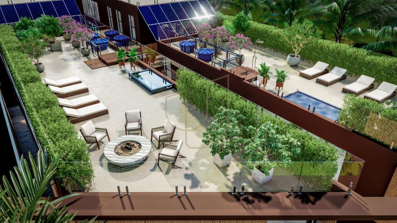 • Amplo jardim, com área de lazer e contemplação do mar e natureza, na cobertura.