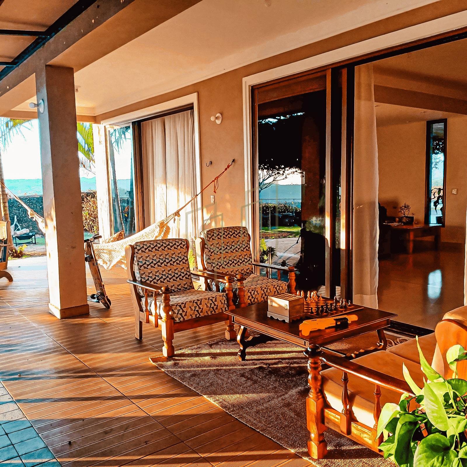 - Varanda ampla e sombreada com vista para o por do sol