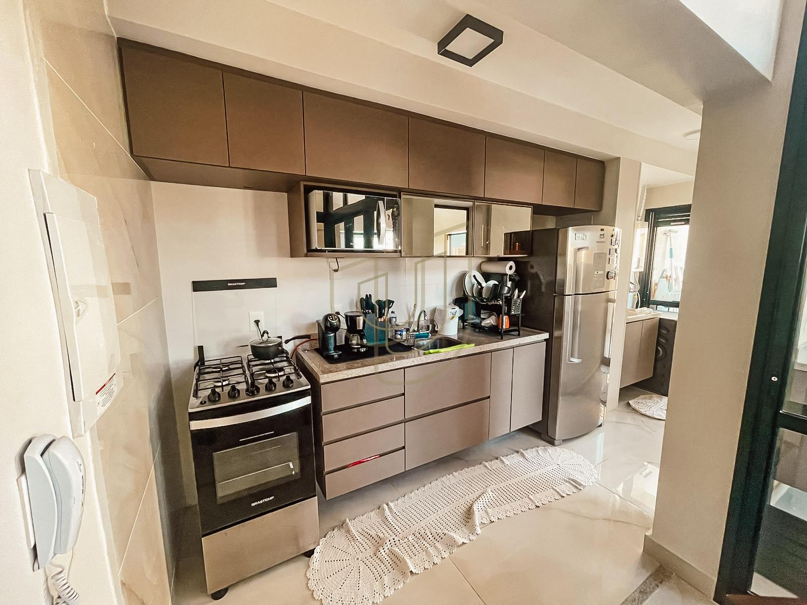 - 2 Suítes - 1 Escritório - 1 Lavabo - Área externa com Sacada e Churrasqueira a Gás - Sala com pé direito de 6 Metros - Cozinha mobiliada - Área de serviço - 2 vagas de garagem